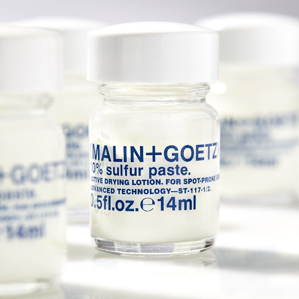 Malin + Goetz 10% Sulfur Paste is suitable for all skin types and should be applied once daily PM time. A cruelty-free and vegan-friendly formula.